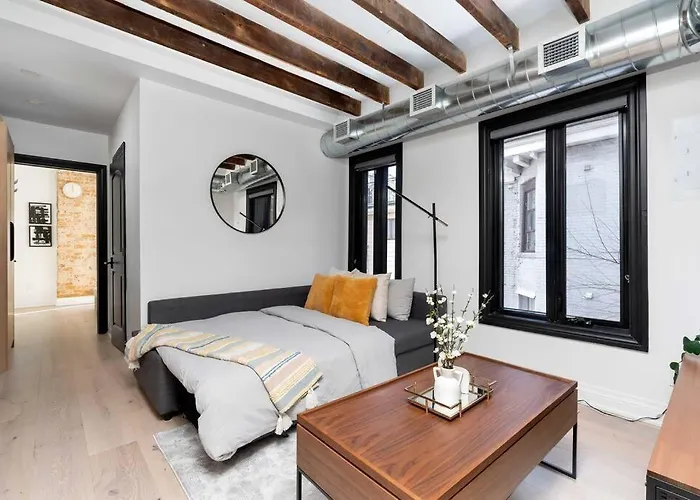 The 1-room Modern Parkdale 1 Bedroom Gem With Free Parking Toronto includes a sunny patio and is situated about 5 minutes on foot from Studio Brillantine Gift Shop. McCormick Arena Stadium is 17 minutes' walk from the apartment, and Humber Bay Park is 3.7 km away.